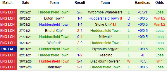 + Thống kê 10 trận gần nhất của Huddersfield