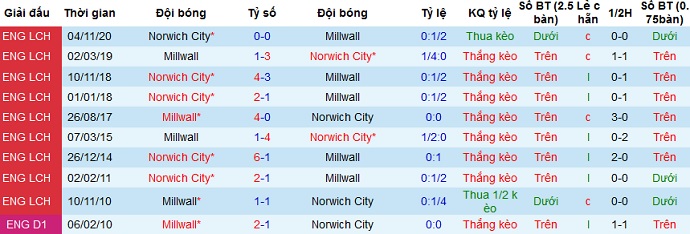 Trong giai đoạn lượt đi của mùa giải này ngay trên sân nhà Norwich đã không thể thắng trước Millwall. Thế nhưng ở 3 lần gặp nhau trước đó Norwich đều giành chiến thắng. Thế nên nhiều khả năng đội chủ nhà Millwall sẽ không thể giữ được dù chỉ 1 điểm ở trận đấu này.