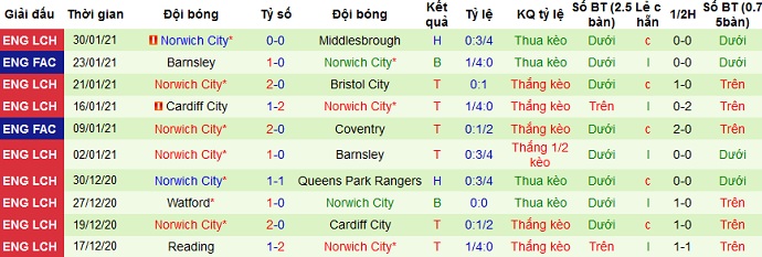 Sau 4 trận thắng liên tiếp, Norwich đã bị loại khỏi FA Cup sau khi để thua trước Barnsley. Ở trận đấu gần nhất Norwich cũng chỉ có được trận hòa không bàn thắng với Middlesbrough. Thành tích du đấu của Norwich tại giải hạng nhất cũng không thật tốt khi đội bóng thắng 3, để thua 2 trong 5 lần du đấu gần nhất.