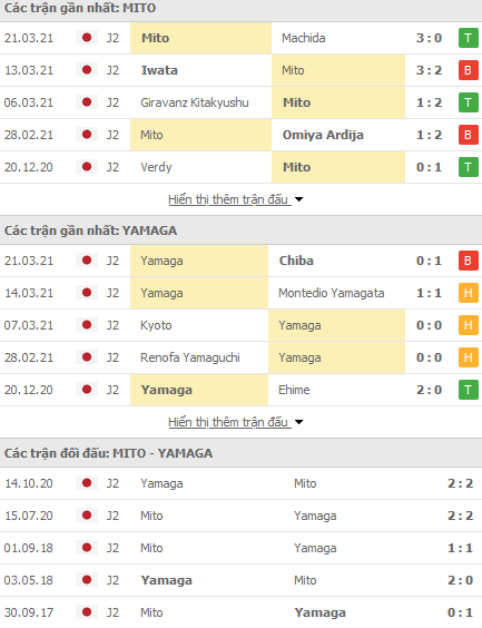 Phong độ và thống kê đối đầu gần đây Mito HollyHock vs Matsumoto Yamaga: