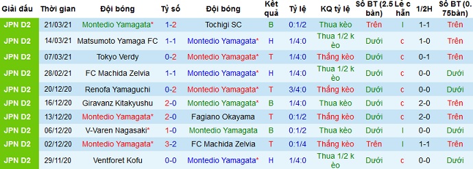 + Soi tỷ lệ kèo châu Á: Mặc dù bằng điểm nhau và đang đứng sát nhau trên bảng xếp hạng nhưng Montedio Yamagata có lợi thế sân nhà nên đang được đánh giá là đội cửa trên với kèo chấp là -0,5.