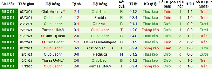 Trong 5 vòng đấu gần đây Club León chỉ thắng được 1 trận duy nhất, để thua ở cả 4 trận còn lại. Đây cũng là trận thắng duy nhất trên sân khách của Club León ở giai đoạn lượt về, còn lại đội bóng đều để thua trong cả 3 lần du đấu khác.