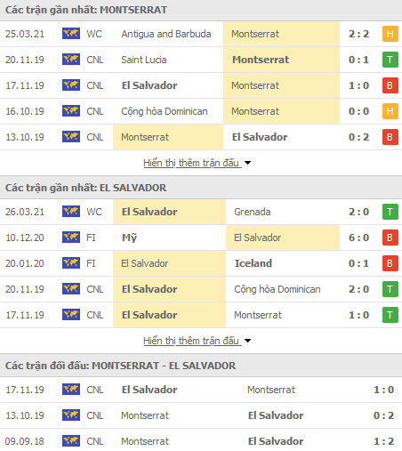 Phong độ và thống kê đối đầu gần đây Montserrat vs El Salvador: