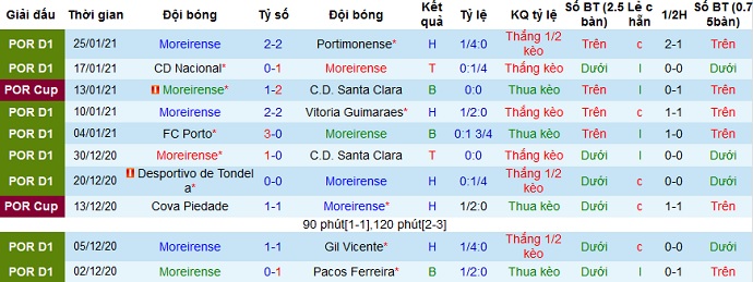 Trong 5 trận gần đây Moreirense chỉ có được 1 trận thắng, 2 trận hòa và 2 trận thua bao gồm cả trận thua tại cúp quốc gia. Trên sân nhà nếu chỉ tích riêng tại giải vô địch thì thành tích của đội bóng cũng không quá tệ với 1 trận thắng và 3 trận hòa sau 4 trận gần nhất tại đây.
