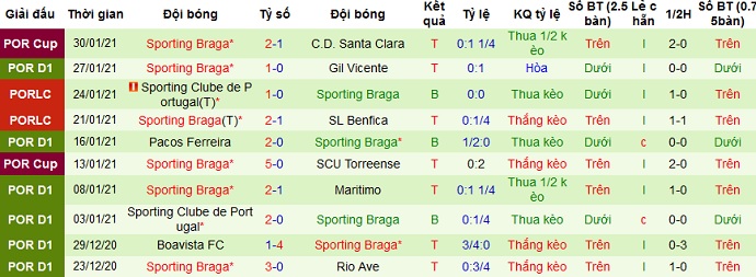 Ở 5 trận gần nhất Braga có được 3 trận thắng và để thua 2 trận trong đó có 2 trận thắng tại cúp quốc gia. Nếu chỉ tính riêng tại giải vô địch thành tích của đội bóng cũng tương tự nhưng trên sân khách Braga chỉ thắng 2 và để thua 3 ở 5 lần du đấu gần đây.