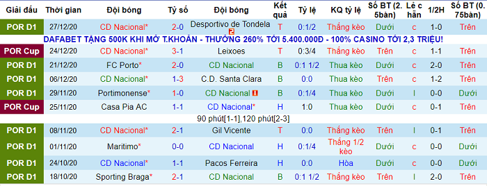 - Thống kê 10 trận gần nhất của Nacional Madeira