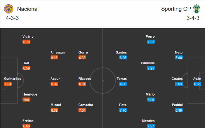 Đội hình dự kiến Nacional Madeira vs Sporting Lisbon