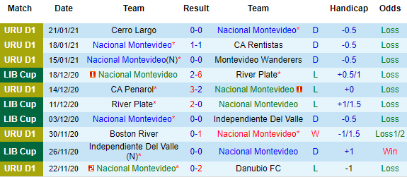 + Thống kê 10 trận gần nhất của Nacional
