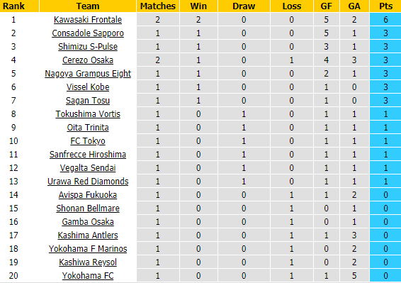 Trong khi ấy, Consadole Sapporo bất ngờ khởi đầu tưng bừng ở mùa giải năm nay với trận thắng hủy diệt Yokohama FC 5-1 trên sân nhà. Kế đó, đội bóng của Chanathip Songkrasin tiếp tục vượt qua Avispa Fukuoka tại Cúp Liên đoàn và nâng mạch trận ấn tượng lên 3 chiến thắng liên tiếp.