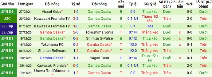 + Thống kê 10 trận gần nhất của Gamba Osaka