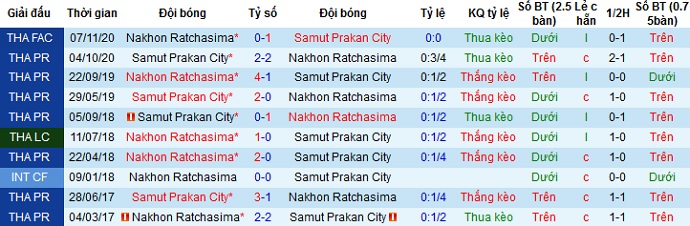 + Lịch sử đối đầu Nakhon Ratchasima vs Samut Prakan