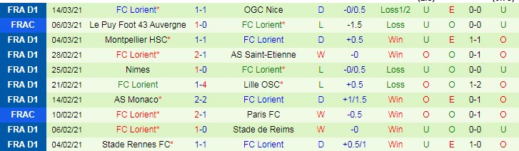 + Thống kê 10 trận gần nhất của Lorient