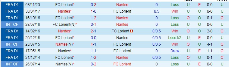 Phong độ và thống kê đối đầu Nantes - Lorient gần đây: