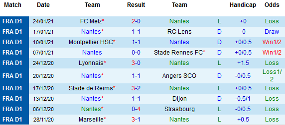 + Soi tỷ lệ kèo tài xỉu: Đã có 7 trong 8 lần gặp nhau gần nhất giữa 2 đội diễn ra trên sân Nantes đều khép lại với tối đa chỉ 2 bàn thắng được ghi.