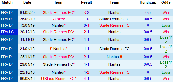 + Lịch sử đối đầu Nantes vs Rennes