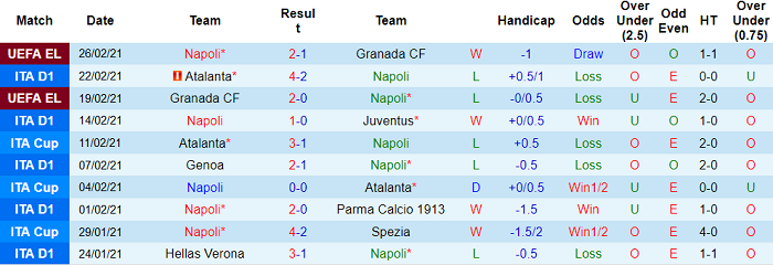 - Thống kê 10 trận gần nhất của Napoli