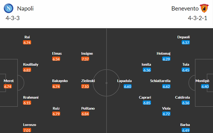Đội hình dự kiến Napoli vs Benevento