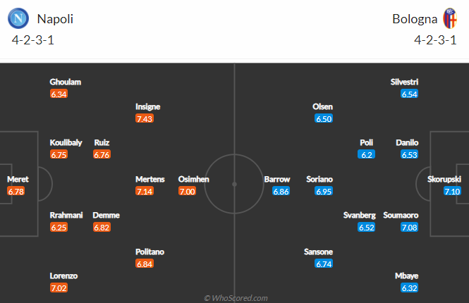 Đội hình dự kiến Napoli vs Bologna