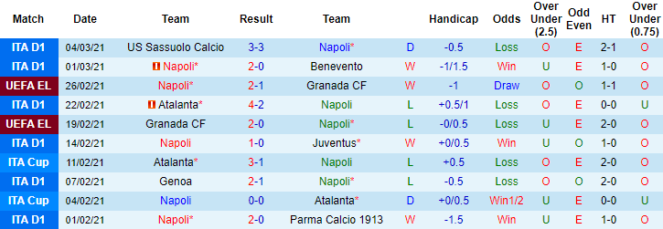 + Thống kê 10 trận gần nhất của Napoli