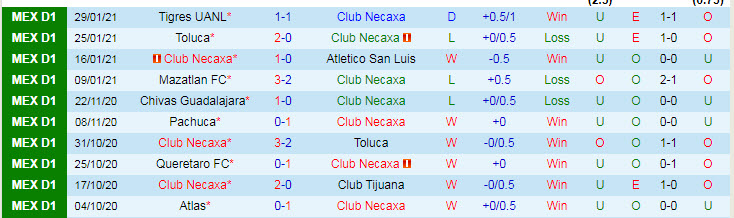 Necaxa không có được phong tốt ở những vòng đấu đầu tiên của lượt về giải VĐQG Mexico 2020/21. Cụ thể, họ chỉ thắng 1, hòa 1 và nhận 2 thất bại sau 4 lượt trận, qua đó đứng ở vị trí thứ 14/18 đội tham dự.