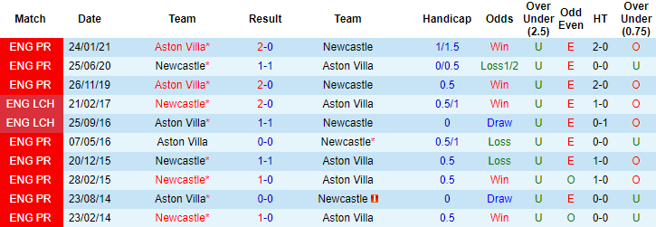 Tỷ lệ kèo Newcastle vs Aston Villa