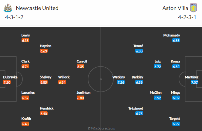 Bên phía đối diện, Aston Villa đã giành được 40 điểm sau 26 trận, xếp thứ 9 trên bảng xếp hạng. Trận đối đầu giai đoạn lượt đi mùa này, Aston Villa đánh bại Newcastle với tỷ số 2-0. Trận lượt về sắp tới, Aston Villa được đón tin vui về mặt lực lượng khi Bertrand Traore, Kortney Hause, Jack Grealish, Anwar El Ghazi và Morgan Sanson trở lại sau chấn thương, sẵn sàng xuất trận.