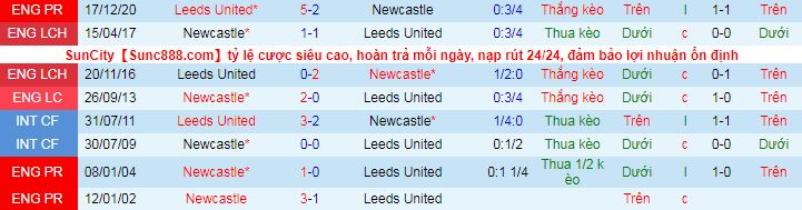+ Lịch sử đối đầu Newcastle vs Leeds