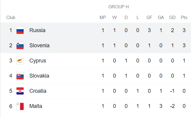 Nga và Slovenia đều có được chiến thắng ở lượt trận đầu tiên của vòng loại World Cup 2022 khu vực châu Âu. Nga đánh bại Malta ngay trên sân khách với tỷ số 3-1 trong khi Slovenia bất ngờ hạ Croatia với tỷ số 1-0.