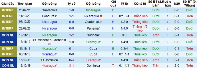 + Thống kê 10 trận gần nhất của Nicaragua