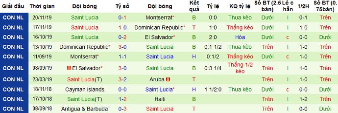 + Thống kê 10 trận gần nhất của Saint Lucia