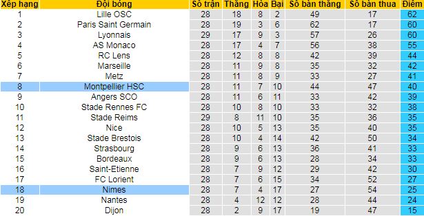 Bên kia sân, Montpellier lại đang có phong độ rất tốt khi đã bất bại ở 8 trận đấu gần nhất trên mọi đấu trường, trong đó có tới 5 chiến thắng. Tại giải VĐQG Pháp, đội bóng này đã giành về 11 chiến thắng, 7 trận hòa cùng 10 thất bại, qua đó có 40 điểm, xếp thứ 8 trên BXH và kém vị trí đá play-off Europa League của Lens 5 điểm.