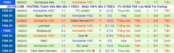 + Soi tỷ lệ kèo châu Á: Montpellier vừa đánh bại Olympique Ales tại Cup Quốc gia để tiếp tục nuối dài mạch trận bất bại của mình lên thành con số 8, cụ thể họ có 5 chiến thắng cùng 3 lần chia điểm. Càng ấn tượng hơn khi mà trong chuỗi trận kể trên, đội khách mang về niềm vui cho các người chơi châu Á đến 5 lần liên tiếp. Chọn Montpellier.
