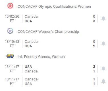 + Lịch sử đối đầu Nữ Mỹ vs Nữ Canada