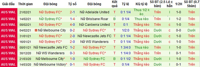 + Thống kê 10 trận gần nhất của Nữ Sydney FC