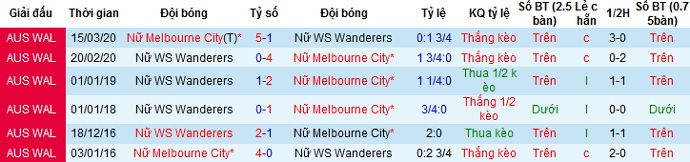Tỷ lệ kèo Nữ WS Wanderers vs Nữ Melbourne City