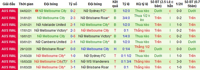 Trong 5 trận đấu gần nhất Nữ Melbourne City chỉ có được 1 trận thắng, để thua ở cả 4 trận còn lại. Trận thắng duy nhất của Nữ Melbourne City từ đầu mùa giải lại có được trên sân nhà, trong khi để thua 2 trận còn lại trong số 3 trận sân khách đã đấu.