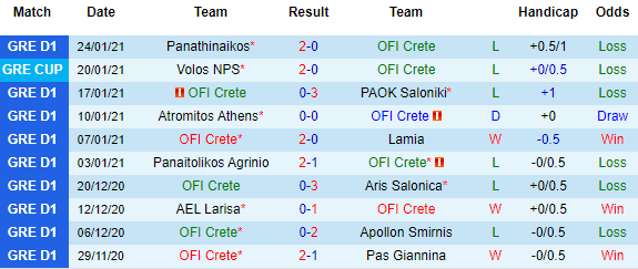 + Thống kê 10 trận gần nhất của OFI Creta
