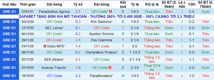 Trong khi đó, OFI Crete lại có dấu hiệu sa sút. Họ toàn thua cả 2 vòng vừa qua: 0-3 trước Aris Thessaloniki và 1-2 trước Panetolikos.