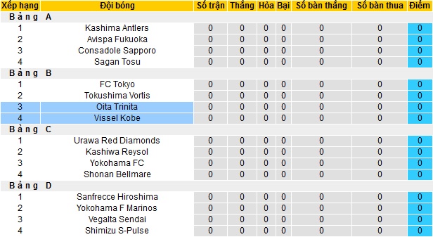 Trận đấu đầu tiên tại bảng B trong khuôn khổ cúp liên đoàn Nhật Bản sẽ là cuộc đọ sức giữa Oita Trinita và Vissel Kobe. Trong mùa giải trước Oita Trinita chỉ có thể về đích ở vị trí thứ 11 tại giải vô địch quốc gia Nhật Bản.