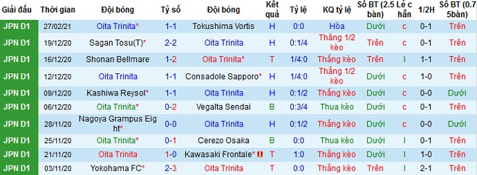+ Thống kê 10 trận gần nhất của Oita Trinita