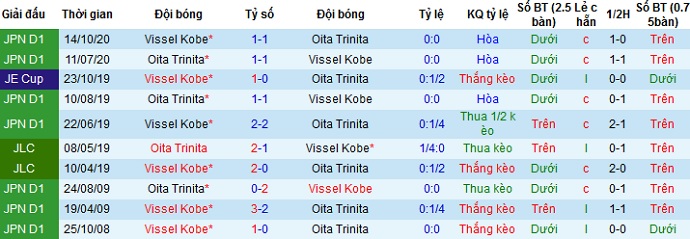 + Lịch sử đối đầu Oita Trinita vs Vissel Kobe