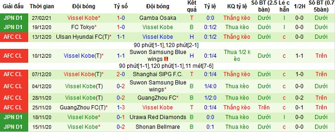 + Thống kê 10 trận gần nhất của Vissel Kobe
