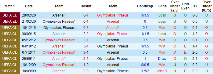 Olympiakos gợi lại nỗi đau của Arsenal tại Europa League mùa trước. Gặp nhau trong khuôn khổ vòng 1/16 Cúp C2 châu Âu 2019/20, Arsenal bị Olympiakos đánh bại với tỷ số 1-2 trong hiệp phụ trận lượt về trên sân Emirates và Pháo thủ bị loại bởi luật bàn thắng sân khách (thắng 1-0 ở lượt đi). Thành tích đối đầu giữa hai đội trong quá khứ ở mức cân bằng: Arsenal thắng 5, Olympiakos thắng 5 trong 10 lần chạm trán nhau tính trên mọi đấu trường.