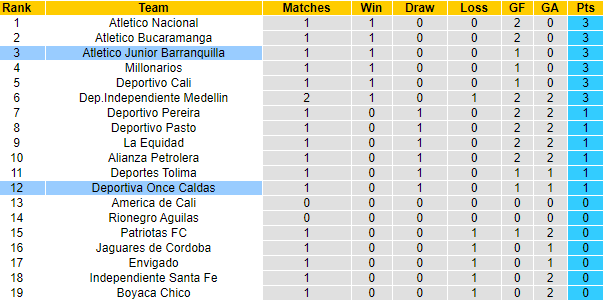 Cần biết rằng 8 CLB đứng đầu sẽ có vé vào đá tứ kết rồi sau đó chọn ra nhà vô địch của Apertura. Mùa trước do dịch bệnh nên giải đấu không chia làm 2 giai đoạn Apertura và Clausura. Ở kết quả chung cuộc của mùa bóng năm ngoái, Once Caldas cán đích ngoài top 8 trong khi Junior Barranquilla có mặt ở vị trí thứ 6.