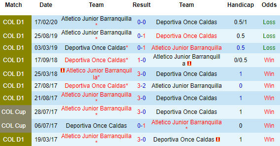 + Lịch sử đối đầu Once Caldas vs Junior Barranquilla