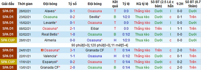 Phong độ của Osasuna vẫn khá thất thường trong giai đoạn gần đây. Tuy nhiên ở 5 trận gần nhất đội bóng cũng có được 3 trận thắng và để thua 2 trận. Trên sân khách thành tích của Osasuna cũng không tệ khi thắng 2, hòa 2 và để thua 1 sau 5 trận gần nhất tại đây.