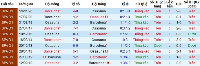 + Lịch sử đối đầu Osasuna vs Barcelona