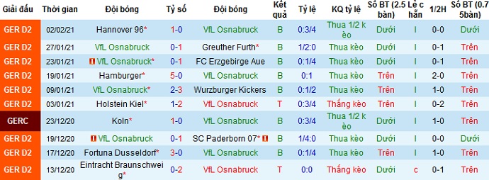 + Thống kê 10 trận gần nhất của Osnabrück