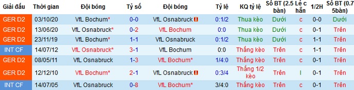 Tuy nhiên trong 6 trận thua liên tiếp gần đây của Osnabrück ngay trên sân nhà, thì họ đã để thua hầu hết tất cả các đội trong nhóm cuối bảng. Trái lại nếu tính riêng tại giải hạng nhì, Bochum cũng có được 2 trận thắng và 1 trận hòa trong 3 lần du đấu gần nhất. Vì thế chọn cửa trên ở trận này vẫn sẽ là sự lựa chọn an toàn và hợp lý.