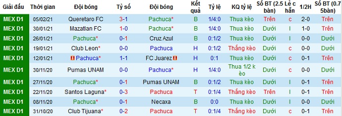 + Soi tỷ lệ kèo châu Á: Tuy chỉ xếp trên đối thủ nhờ hơn về hiệu số bàn thắng nhưng với lợi thế sân nhà, Pachuca vẫn được đánh giá là đội cửa trên với kèo chấp là -0,5.